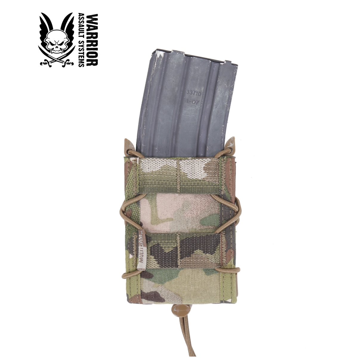 Single Quick Mag v Multicam barvi je vsestranski večnamenski “pouch” za nabojnike 5,56 mm. V Quick Mag Warrior Assault Systems lahko vstavite tudi nabojnike 7,62 mm x 39 mm AK mags M14 FAL itd. Velikost se lahko prilagodi z elastično vrvico, ki je napeta skozi strani torbice. Vsebuje tudi dodatno elastično vrvico za operativce, ki potrebujejo dodatno varnost svoje opreme. Banji omogoča zavarovanje nabojnika.