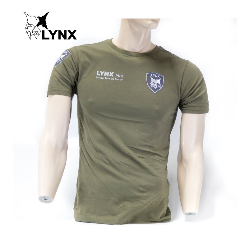 Moška majica LYNX PRO TC (Training center), kratek rokav. Majice so na voljo v olivno zeleni in črni barvi. Z LYNX PRO logotipom so označene na obeh rokavih in na levem prsnem delu. Na desnem prsnem delu je napis LYNX Pro / Tactical Training Center. Na zadnji strani pa pa pomenljiv napis: EVEN EXPERTS NEED TRAINING.